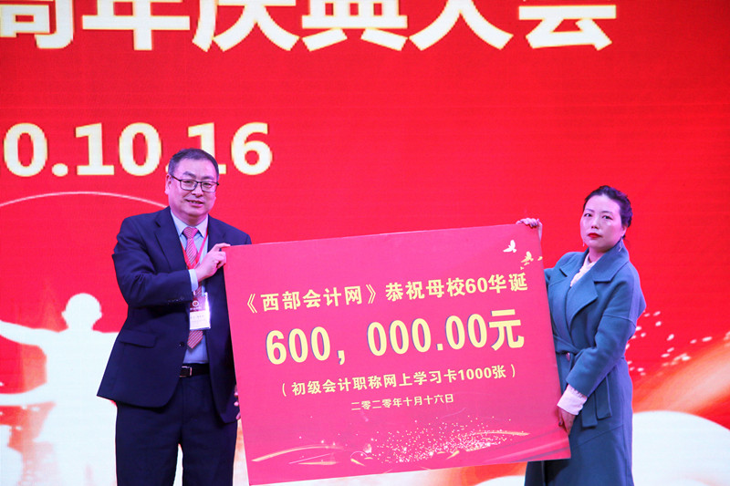 万物速朽,但真情永在。广大校友毕业数载,初心永驻。庆典现场,学院2008级校友西部会计网董事长代欢欢为母校捐赠了价值60万元的初级会计职称网上学习卡。