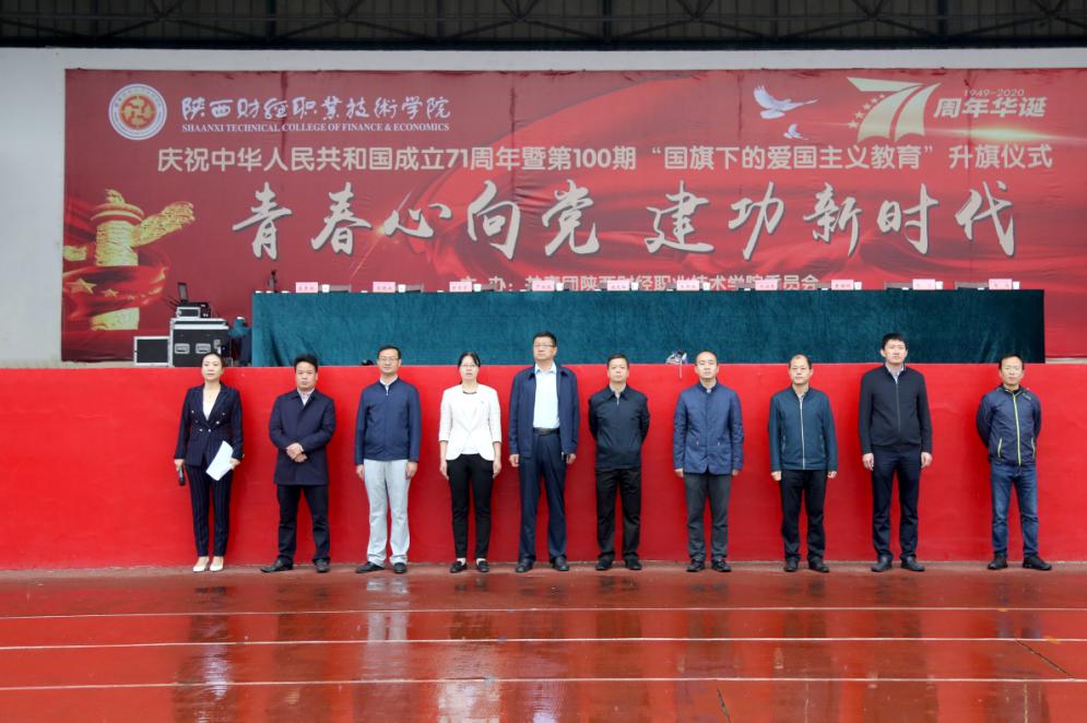 9月28日清晨7:00,我院在操场冒雨举行“青春心向党·建功新时代”庆祝中华人民共和国成立71周年暨第100期“国旗下的爱国主义教育”升旗仪式。学院党委书记张志华、学院党委副书记朱华斌出席活动,党委宣传部部长严丽丽、学生工作处处长乔晶策、用友·新道会计学院总支书记曾贵荣、大数据与人工智能学院总支书记曹耀辉,商学院党总支书记张晓战、经济与金融学院副院长陈冬、学生工作处副处长贺适以及各二级学院团总支书记、辅导员和学生代表500余人参加了升旗仪式。升旗仪式由团委书记窦曼娟主持。